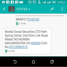 Client can get the details of Branch or Franchisee where his / her Account is mapped just by a SMS.