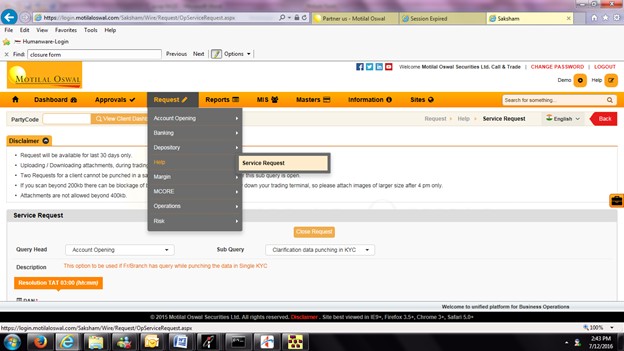 Biz-Ops > Request > Help > Service request > Account Opening > Clarification Data Punching in CITRUS