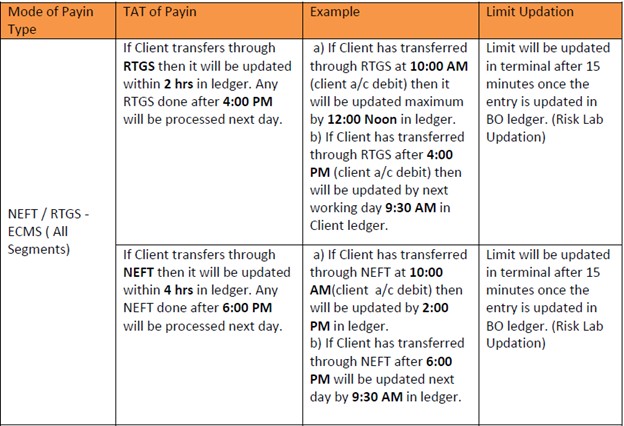 What is the TAT for updation of client ledger through ECMS (NEFT / RTGS)?